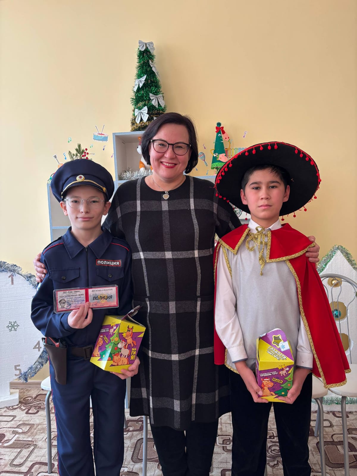 с наступающим Новым годом, подарили новогодние подарки, пожелали исполнения